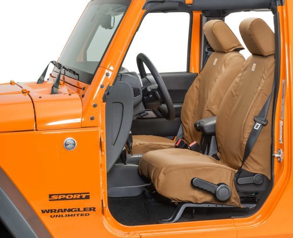 - Covercraft Carhartt SeatSaver Custom Seat Covers: Crafted with Carhartt duck weave fabric, these custom-fit seat covers provide rugged durability for the 2021 Jeep Wrangler. With protection against stains and spills, they are ideal for those with an active off-road lifestyle.